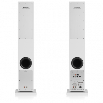 Aufgrund seiner Größe liefert der A38 ein noch größeres Klangerlebnis als sein Geschwistermodell A28. Das größere Gehäuse mit seinen beiden Tieftönern sorgt für einen zusätzlichen Tiefbass. Mit seiner kleinen Grundfläche passt er gut auf den Boden neben dem Fernseher.