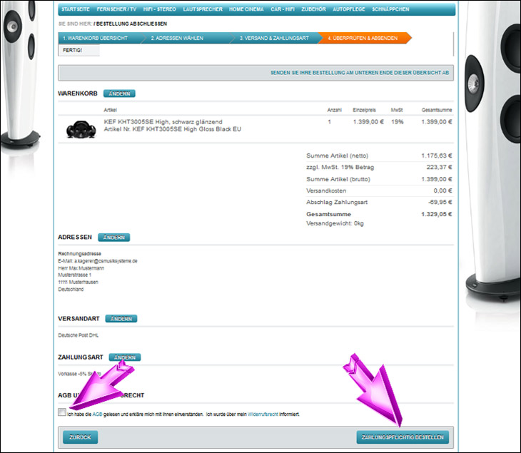 Bestätigen Sie unsere AGB´s und klicken Sie dann auf Zahlungspflichtig bestellen.