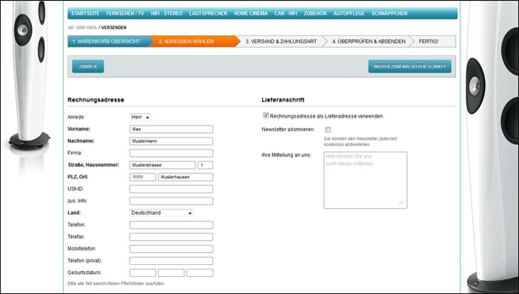 Geben Sie dann Ihre Adressdaten ein