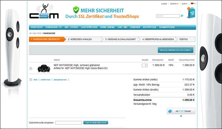 Zuerst legen Sie Artikel in den Warenkorb